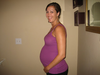 28 weeks in and things are still moving along as they should be. Nothing too exciting to report this go around, which is great news! This month's appointment was quick and easy. Baby Kelly is growing right along as she should be measuring exactly the right size and her heart beat is still going strong and healthy. I passed my glucose tolerance test with flying colors and my crazy weight gain finallly slowed down - I'm right on track in that department. I feel like this month things didn't change much and the belly is pretty much the same size as the last update. But you can judge for yourself. I'm just glad to see that the belly is growing more than the backside!!