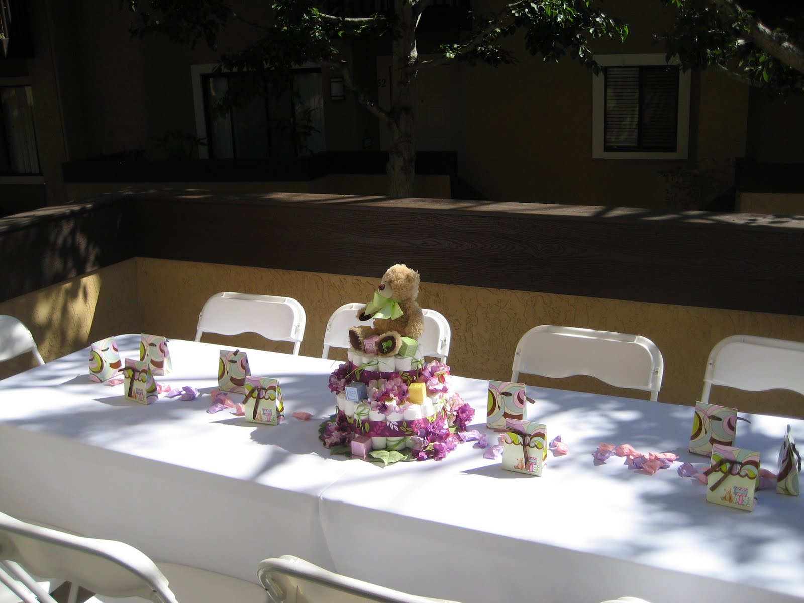 Oh my goodness - I just had the best baby shower ever! I can't believe the turnout and how all those women fit in my little apartment. First and foremost I want to thank my amazing mother and soon to be "Grammy" for all the work she put in to make my shower so wonderful. She did a great job turning our little home into baby shower perfection. And those centerpieces were adorable!! I swear she should go into business making those.