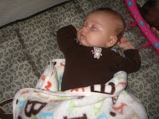 Today was a tough day, but Raegan and I both survived her first shots. I know she needs them, but boy is it hard to see her be poked and cry! She actually cried more before the shots than after, which was fun for me since it was her first time to this doctor. She apparently is afraid of that office or something. She screamed the entire time. Then when she got her shots she had a very new cry - it sounded like she was shocked more than in pain. Poor thing! But she was a champ and rested well soon after.