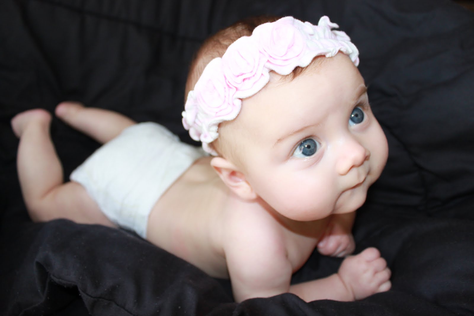 This month has been a lot of fun watching her progress and do new things, such as laughing, grabbing at toys and playing in her jumperoo. She's a very active little girl, but we're still waiting for the rolling over and sitting up to start. I'm sure she'll start that soon and be running around the house in no time!