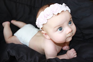Well it's true what they say, time sure does fly by! We can't believe little Miss Raegan is 4 months old today. She has grown a little bit and keeps getting called small, but she is just perfect to us. Today's doctor visit went well and she took the next round of shots like a champ! She was much more friendly with the doctor this time and was showing off her smiling and squealing abilities. She weighed in at 12 lbs and was 24 inches long. So far she's gained about a pound a month. I think we'll introduce some rice cereal this month and I'm sure she'll start plumping up in no time and we'll get a true workout carrying her around!