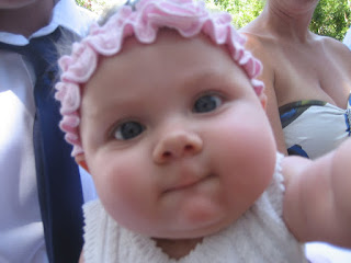 This month has been full of adventures for little Miss Raegan. She's concurred the solid food thing and loves her oatmeal, carrots and sweet potatoes - not the peas so much, but I can't blame her because that was the veggie I hated the most as a kid. We'll be introducing more tasty food here soon. And as cruel parents often do, we let her taste a lemon and enjoyed the sour face!! But she loved it and dived in for more!! haha.
